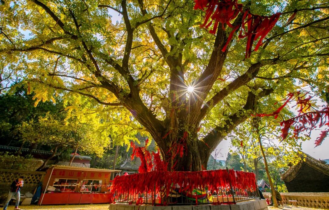 在中国四大古刹之一的灵岩寺内藏着醉美的绚丽秋色,数棵千年古银树美得令人如痴如醉。