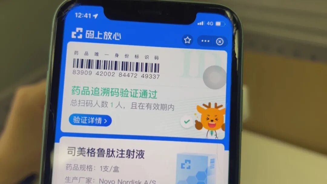 而通过一家代购,不用任何凭证,记者下单三天后就收到了一支标称为司美格鲁肽的药品,通过扫描药品追溯码,系统显示为验证通过。