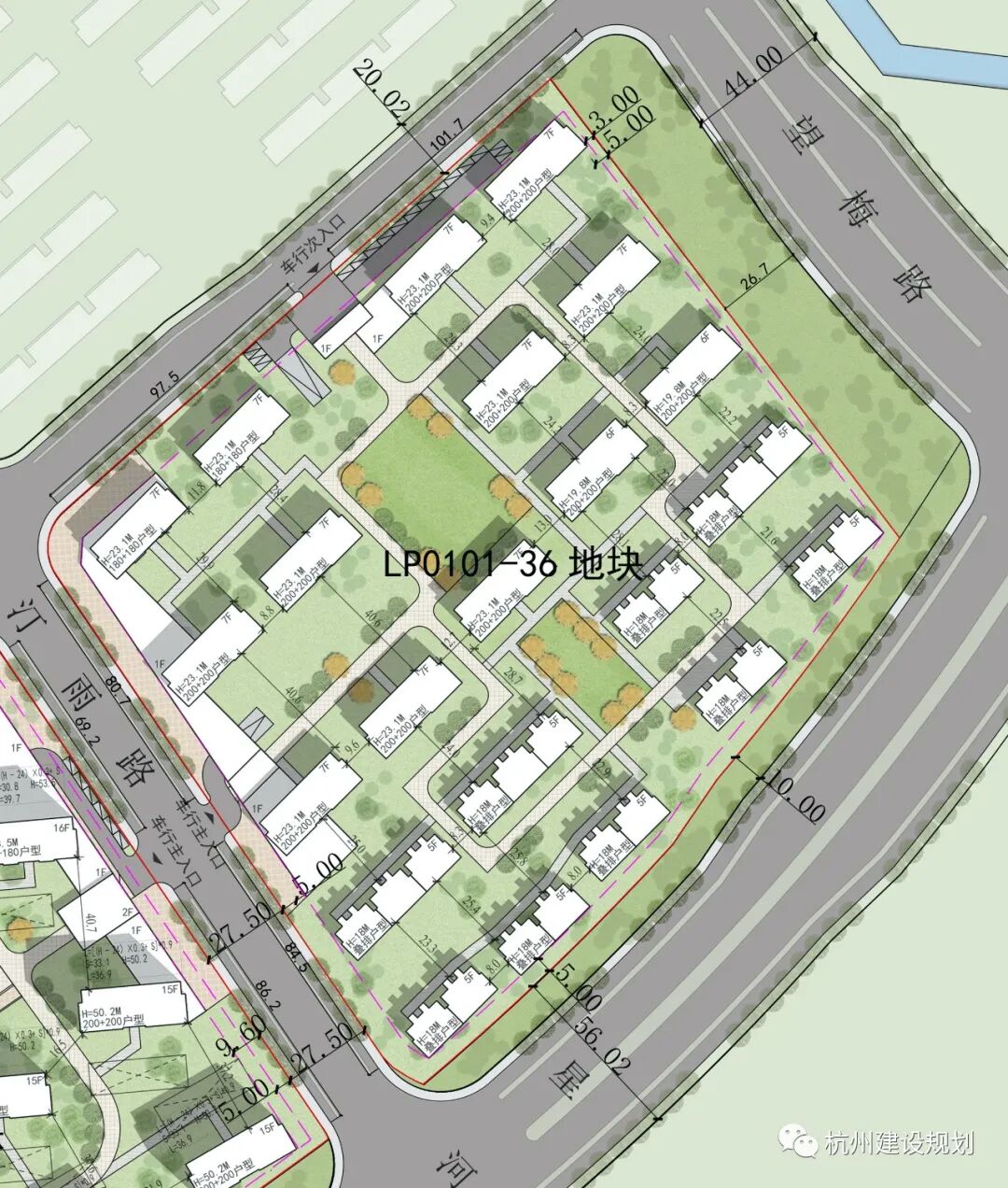 LP0101-35地块东至汀雨路,南至星河南路、北至永乐路、西至良熟路;规划用地面积为40485平方米。LP0101-36地块东至望梅路绿化边界、南至星河南路绿化边界、北至永乐路、西至汀雨路;规划用地面积为42892平方米。