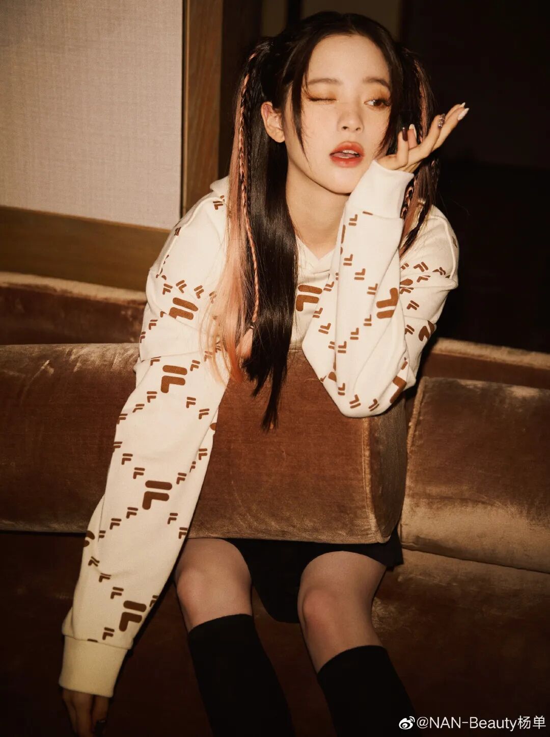 在红褐色背景墙和无滤镜相机前,她像是开了“谁用谁好看”的抖音学姐妆特效,空降赢麻了广场。