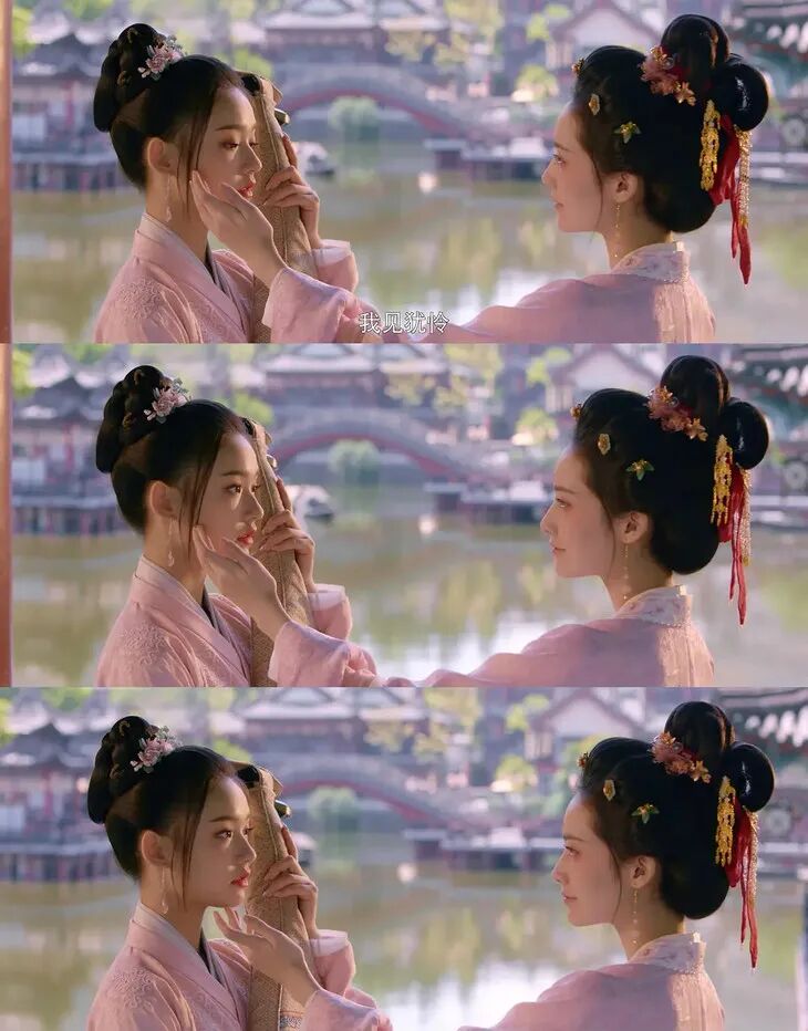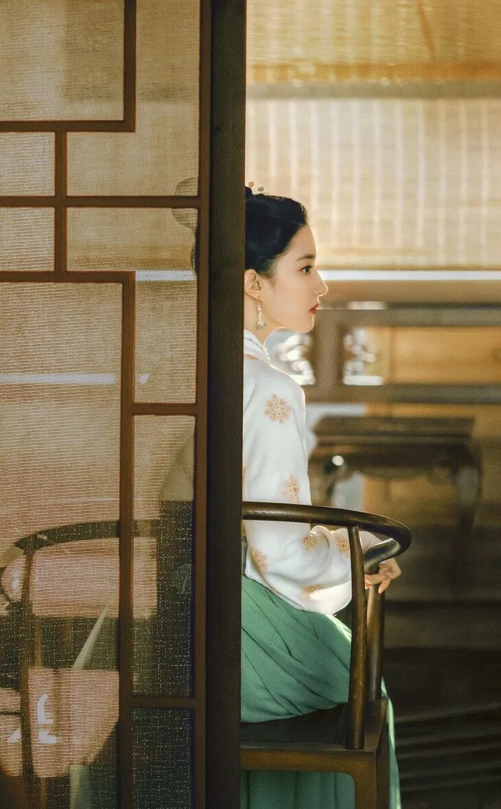 去见官赵盼儿会换一身得体的衣服,睡觉时会脱外衣散头发,救宋引章扮花魁魅惑迷人,回忆里长辫子鹅黄裙的样子看起来比现在要稚嫩。