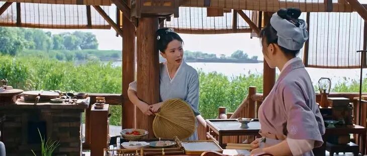 刘亦菲倒茶的姿势模仿的是《韩熙载夜宴图》里乐伎跳舞的姿势,也体现了她曾经是乐伎的身份。