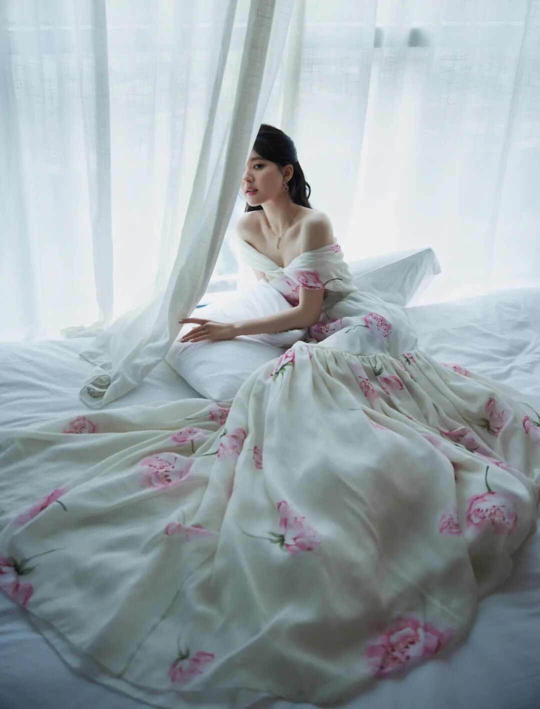 这是去拍海马体也要让化妆师重画的程度,为什么要让美女承受这个眉毛?眉低压目,显得眼睛睁不开,还会有种紧促皱眉感,实在和赵露思的美貌不搭。