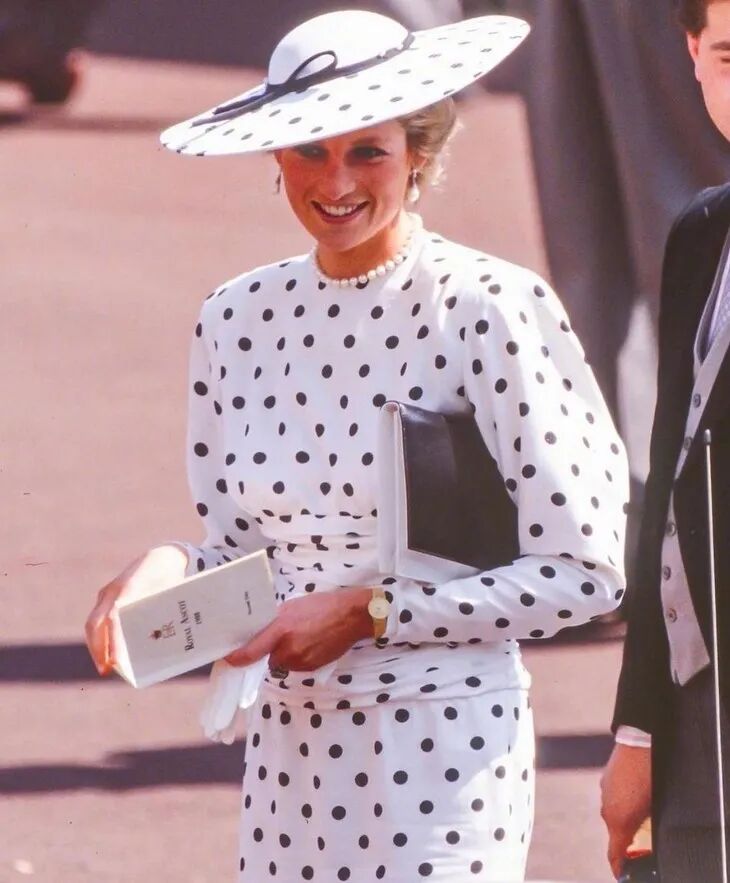 前两天,凯特王妃出席皇家赛马会便致敬了1988年戴安娜王妃参加皇家赛马会时的波点造型,就连耳垂上的珍珠耳环也没落下。