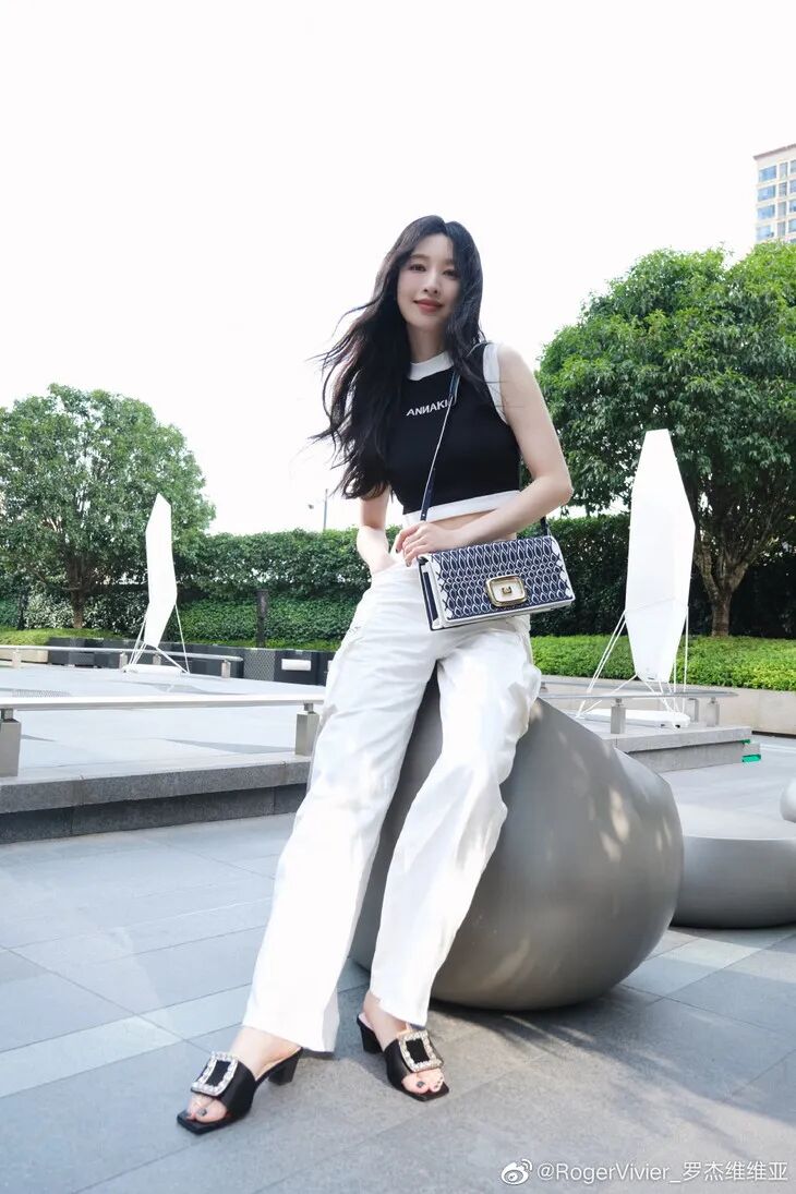 夏天可以看看张俪的新宠——Love钻扣丝缎穆勒鞋。丝缎点缀钻扣,一脚蹬拖鞋也能兼顾高级典雅的气质。