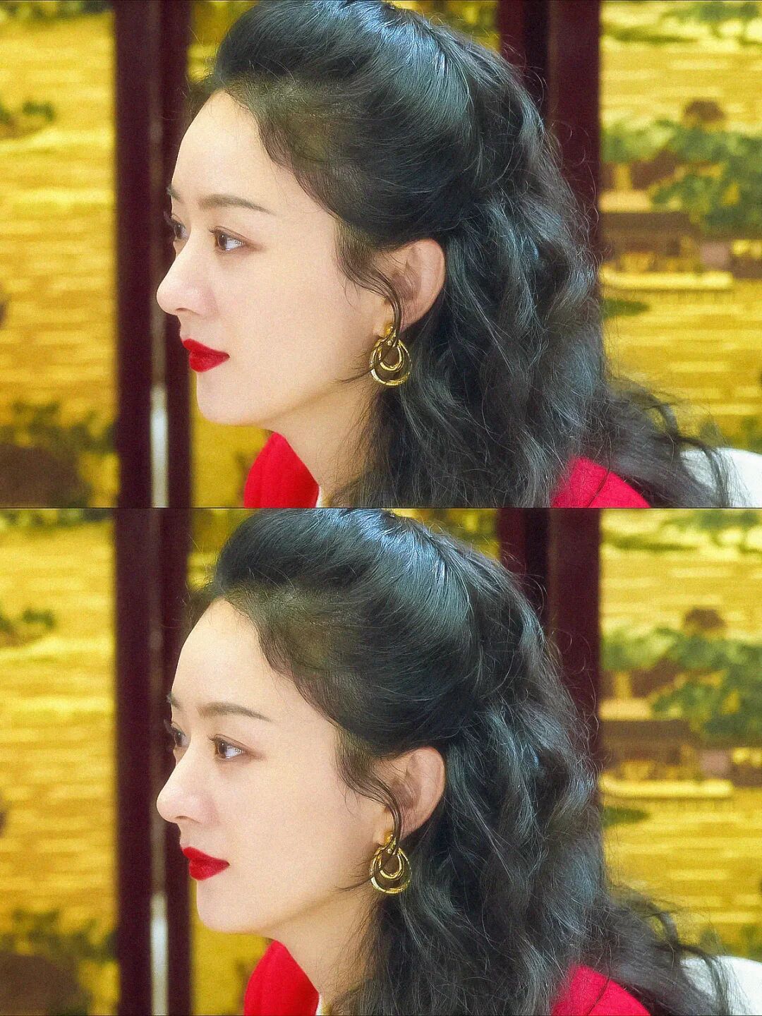 眉形上扬的同时,没有刻画出明显锐利的眉峰,而是让眉毛保持一定弧度下滑,有一种说不出的轻盈感,使得这种眉形在赵丽颖以圆线条为主的脸部结构上,更为协调和谐。