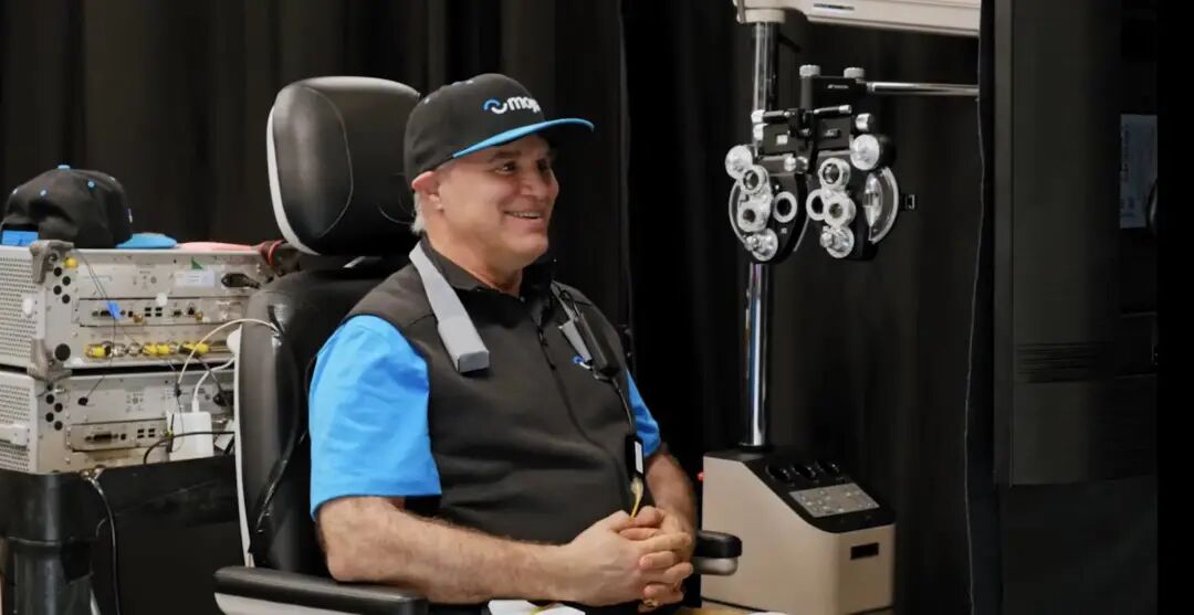 Mojo Vision 创始人 Drew Perkins 图片来自:Mojo戴着 Mojo Lens 出镜测试的 Drew Perkins 患有白内障,虽然通过手术治疗,让他有了一定的视觉能力,但他无法聚焦于远处和近处。由此,他将目光瞄向了「仿生眼」,想要通过技术手段来获得超级视觉。![]()