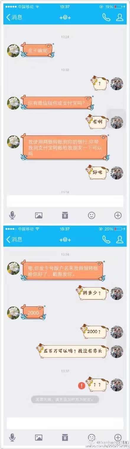 君估计,像“爸我开房被抓了,快转钱到我同学卡上”这种内容,