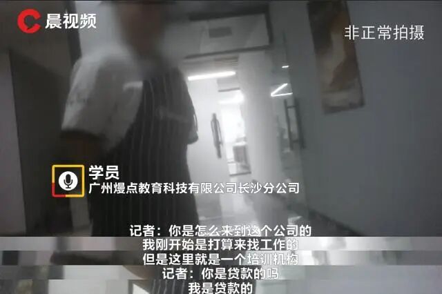 近期,潇湘晨报(报料微信:xxcbbaoliao)晨意帮忙记者接到小黄求助后,来到“广州熳点教育科技有限公司长沙分公司”暗访调查,摸清了该公司的“培训贷套路”。同时记者还发现,还有多名学员有一样的经历,均是求职后被诱导借贷万元分期,参加“岗前培训”。