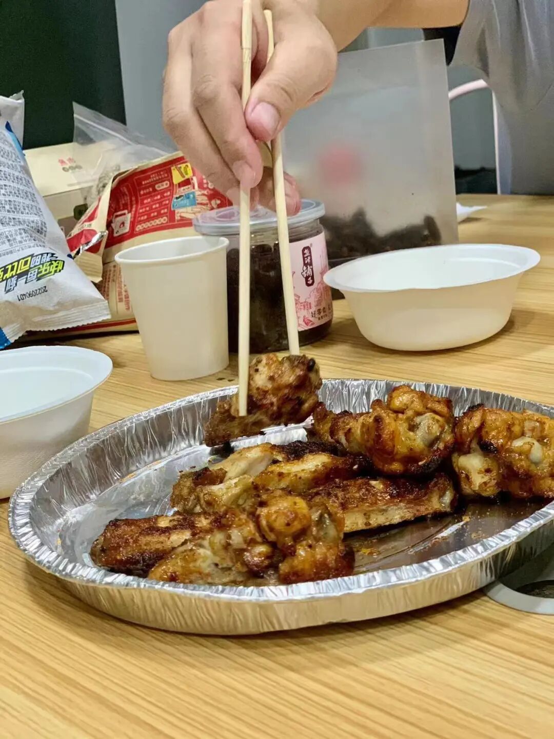 △大家一起分享美食。