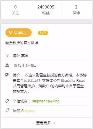 于是君颤抖着关注了霍金教授,瞬间觉得圈住了全宇宙啊有木有!