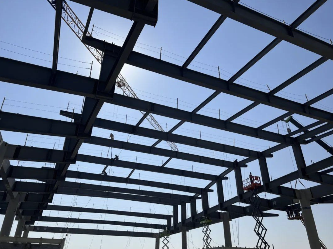 据悉,本次南二指廊屋盖钢结构施工顺利完成节点目标,标志着该区域钢结构工程节点按照施工计划完美收官,同时为幕墙工程,金属屋面工程提供了作业条件,更为航站楼早日竣工交付并投入使用奠定了基础。
