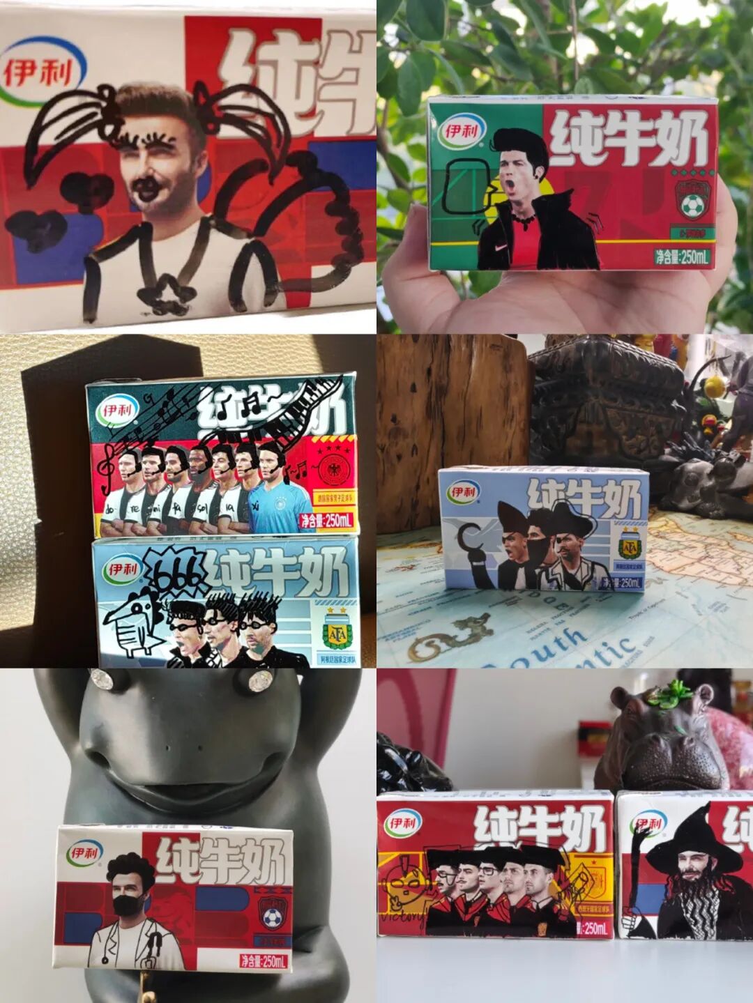 奶盒正面被玩坏了还不过瘾,还有一波网友把背面也玩出了花!
