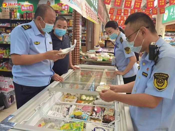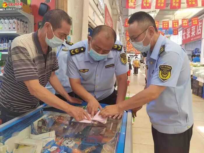 在天山区文化路一家沿街商铺,执法人员随机对冰柜里的雪糕进行了货签比对,发现商家对个别新进的雪糕品种未及时更新货签,现场进行了指导整改。