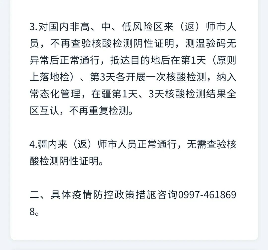 原标题:兵团各师市疫情防控政策措施汇总(8月25日)