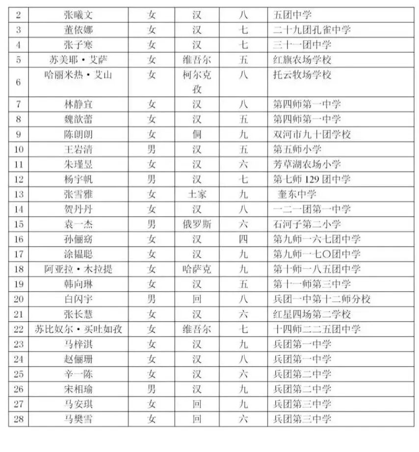 兵团入选第十五届宋庆龄奖学金候选人的28名学生