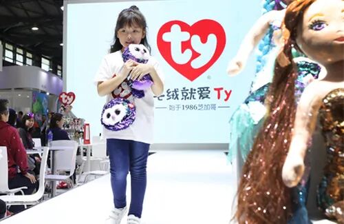↑ 小模特在展会现场手捧毛绒玩具进行展示丨图片来源:新华社