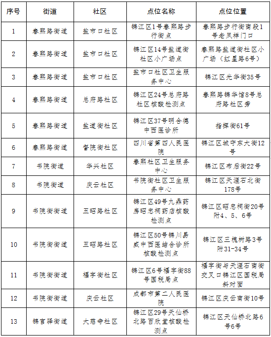7月16日,成都市武侯区、成华区、锦江区相继发布通告,将在辖区范围内开展第二轮全员免费核酸检测。具体消息如下: