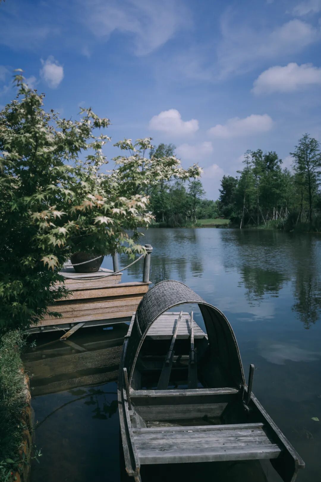水潭、木桥、芦苇、睡莲……