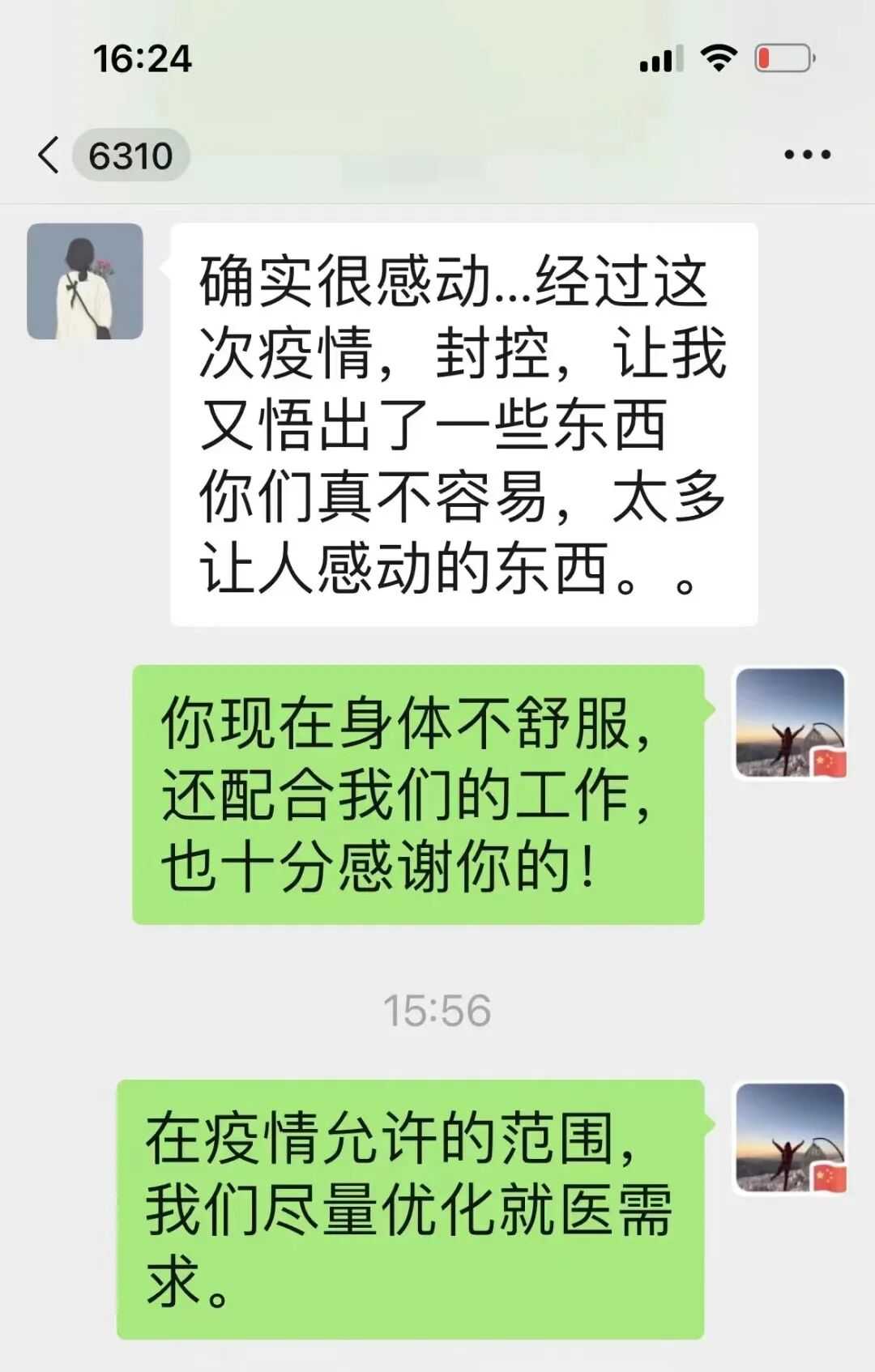 据叶红介绍,华阳疫情防控指挥部关心关爱组在复地·御香山封控后,还快速建立了居民医疗需求微信群。居民医疗需求微信群的建立,让广福社区中高风险区居民的需求都能第一时间被医生看到并解决,根据患者身体情况,可以进行线上视频会诊,也可以请医生穿好防护服上门看诊,对于比较严重的患者,闭环运送到医院,进行治疗,最大力度保障居民的健康和身体安全。据统计,截至7月28日6时,华阳街道疫情防控指挥部摸排出中高风险区老弱病残孕特殊人群85名,累计收集需求85条并全部解决,与58名疾病患者取得联系,随时关注其健康状况,全力保障居家隔离人员的生活。