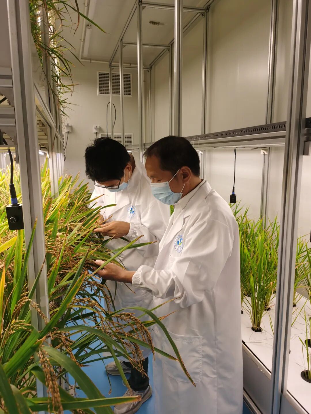 在位于天府新区的国家成都农业科技中心的实验室里,中国农业科学院都市农业研究所的科研人员们正在细心查看育种加速器中的水稻生长情况,饱满的稻穗已经基本成熟,长势喜人。