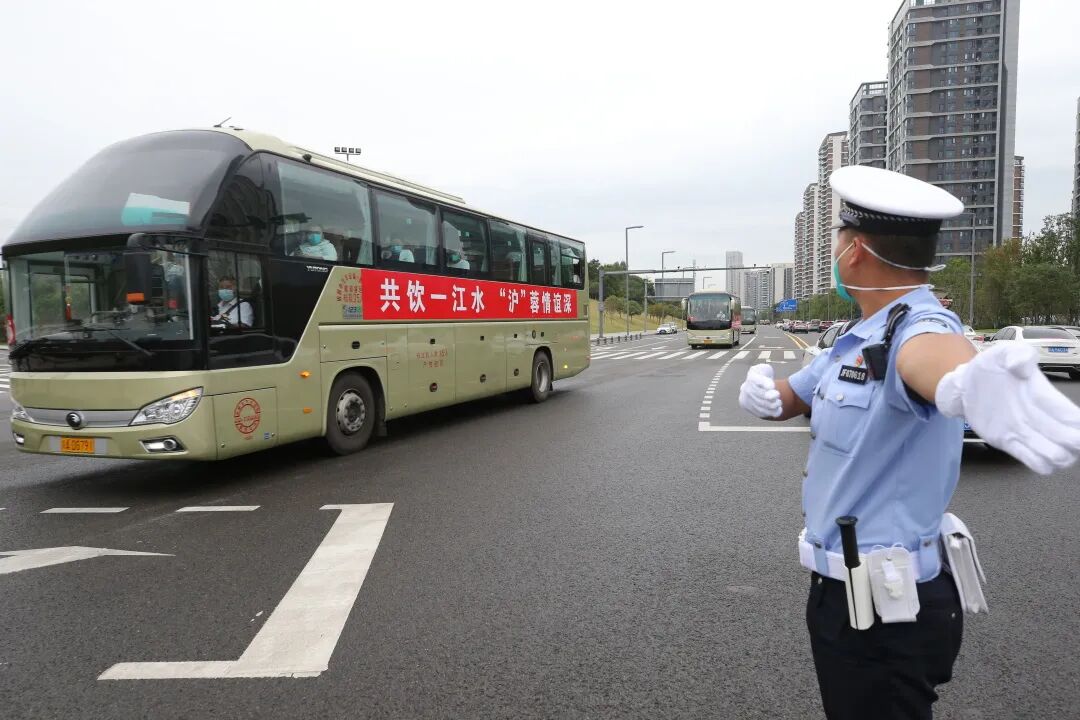 ↑ 上海援蓉核酸检测队乘坐大巴离开