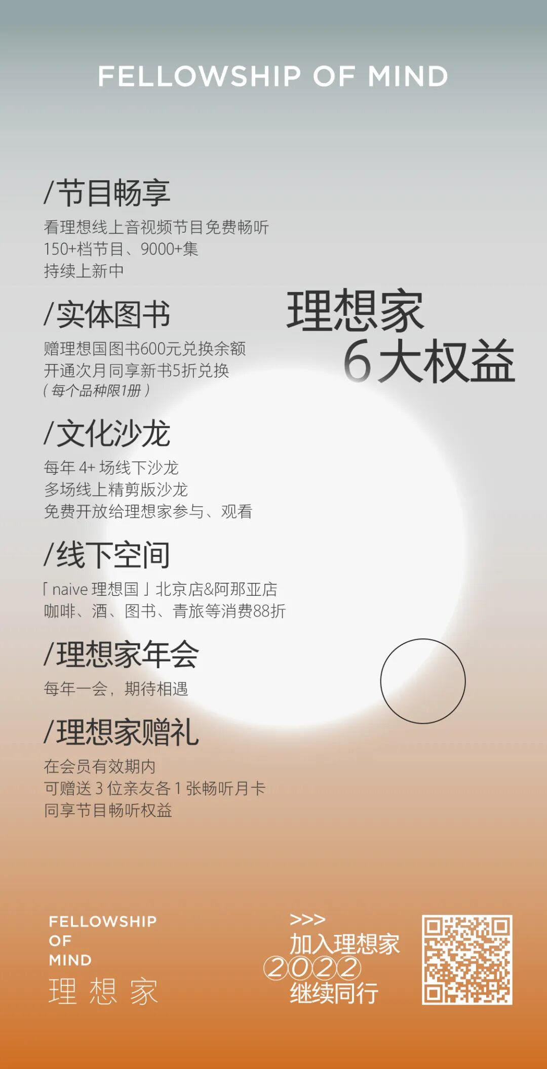 「理想家」是理想国、看理想、naive理想国联合推出的会员计划。