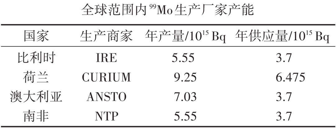 99Mo(99mTc)是最重要的医用放射性同位素。美国是医用99Mo的最大使用者,其使用量占全球使用量的50%,在2018年前,医用99Mo完全依赖于进口。