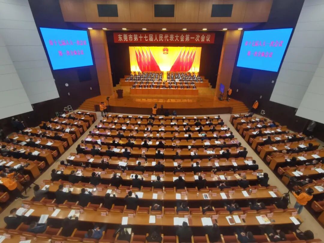 1月11日上午,东莞市第十七届人民代表大会第一次会议在市会议大厦开幕。市委副书记、市长吕成蹊向大会作政府工作报告。