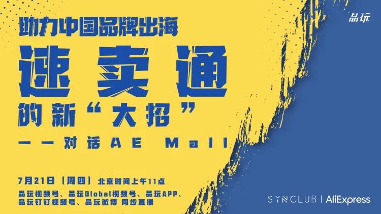 7月21日举行的SYNClub线上直播活动中,品玩特别邀请到全球速卖通 AE Mall负责人泽岳,探讨行业普遍关心的“中国品牌如何出海”话题,分享阿里巴巴在助力优秀国产新品牌走上全球化这条道路的各种见闻和实践。