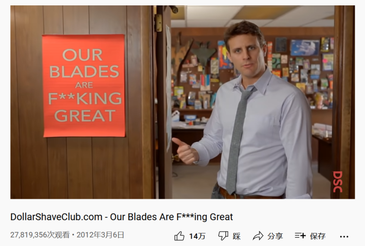 视频中,麦克尔·迪宾以调侃的口吻说:“你认为每个月花出去的20美元都用在买剃须刀上了?有19美元都给到了费德勒。”(费德勒是吉列的代言人)没有提及吉列,产品卖点却与吉列针锋相对,这条视频在短短48小时内带来12000个订单。