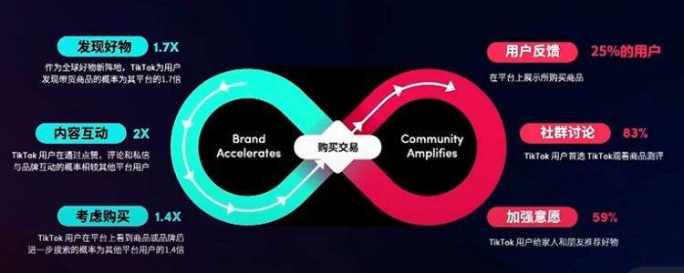 TikTok已经是全球排名前列的流量来源,但中国出海商家已经习惯的买量思维却有可能在这个平台失效。和其他视频平台的商业化相似,内容和社群是关键。海量内容是TikTok平台不断扩张的基础,用户是这些内容的生产者、观看者、互动参与者,形成或大或小的社群。内容营销是做TikTok营销的重头戏之一,品牌主可以想方设法让营销内容触及目标社群,或是主动发布视频内容、开通直播、与达人合作,建立和维护自己的社群。可以说,理解TikTok平台是许多全球化商家投入预算之前的必修课。这个平台依然和“Z世代”、年轻人、潮流等标签符号强关联,但30~50岁的中年用户比例正在上升。碎片化内容曾被视为洪水猛兽,但注意力经济时代还是势不可挡地到来了。第三方调研数据显示TikTok的月均使用时长在2021年年底超越海外主流长视频平台,成功夺走用户大部分注意力。市场证明了短视频内容形式的普适性,在电商功能推出后,TikTok平台开始影响人们的购买习惯。德勤全球调研数据显示,TikTok用户在一年中平均线上消费下单达到38.4次,其中有33%的用户每周至少线上消费一次。社交电商,或者说娱乐与电商融合是消费者购物偏好演化的大趋势。同时,在全球经济不景气和高通胀的大背景下,消费者更频繁地寻找优惠的消费方式,追求更高性价比。TikTok for Business出海业务负责人王露表示,“消费者跳脱出电商购物平台,他们的购物习惯呈现出触点多样化、购物碎片化、链路复杂化的新特征。”换言之,传统的“注意——认知——喜爱——决策——下单”消费转化逻辑失效,漏斗式的转化模型已不再适用于大部分消费者的实际情况。“无限循环”营销体验,图源:TikTok for BusinessTikTok for Business给出了“无限循环”的购物体验图示,以展现用户在TikTok平台从感兴趣到下单的随机性。他们可能在认知、喜爱、决策的任意一个环节切入,并进入其他环节。比如,用户可能被新产品视频或KOL推荐“种草”,立即“激情下单”;可能主动搜索相关视频,经过深思熟虑后下单购买;可能无意间刷到想要购买的产品评测内容,做出购买决策;可能会在评论区和其他用户讨论,为购买寻求决策支持……换言之,利用好TikTok平台可以让消费者快速认知、记住产品、品牌,并最终下单,随着电商广告产品的补足,TikTok平台的电商全链路营销已初具雏形。