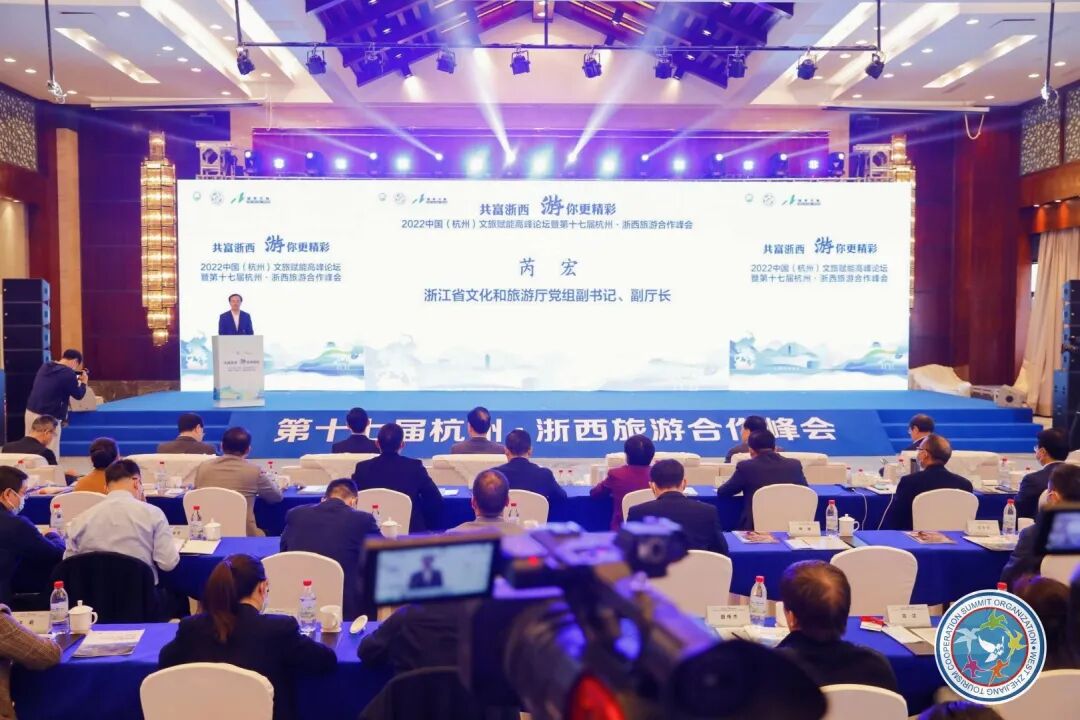 22日,2022中国(杭州)文旅赋能高峰论坛暨第十七届杭州·浙西旅游合作峰会在青山湖畔隆重举行。来自嘉兴、绍兴、湖州等都市圈城市文旅部门负责人、国内知名专家学者、省内优质合作旅行商、浙西文旅企业及媒体等160余名代表参加峰会。浙江省文化和旅游厅党组副书记、副厅长芮宏,杭州市政府党组成员朱党其,杭州市文化广电旅游局相关负责人,区领导杨泽伟、孙超、张凯出席。