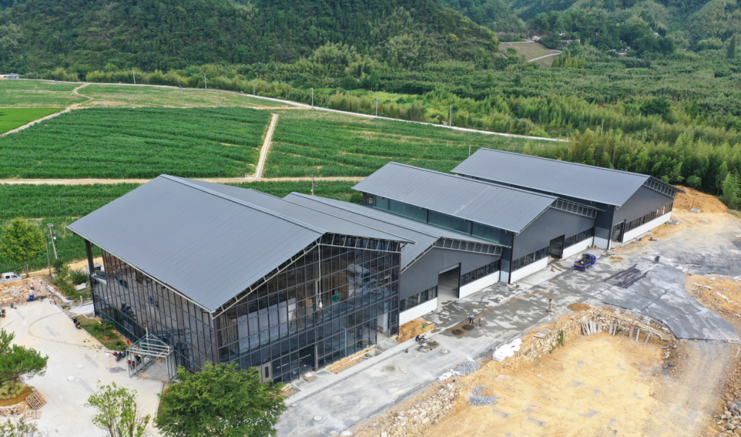 於潜现代化农事服务中心位于於潜镇高后线共富示范带,建筑总面积8178平方米,总投资3500万元。目前农事服务中心的外部绿化、停车场、园区道路等配套设施基本完成;外立面幕墙已经完工,工人们正在进行内部装修。