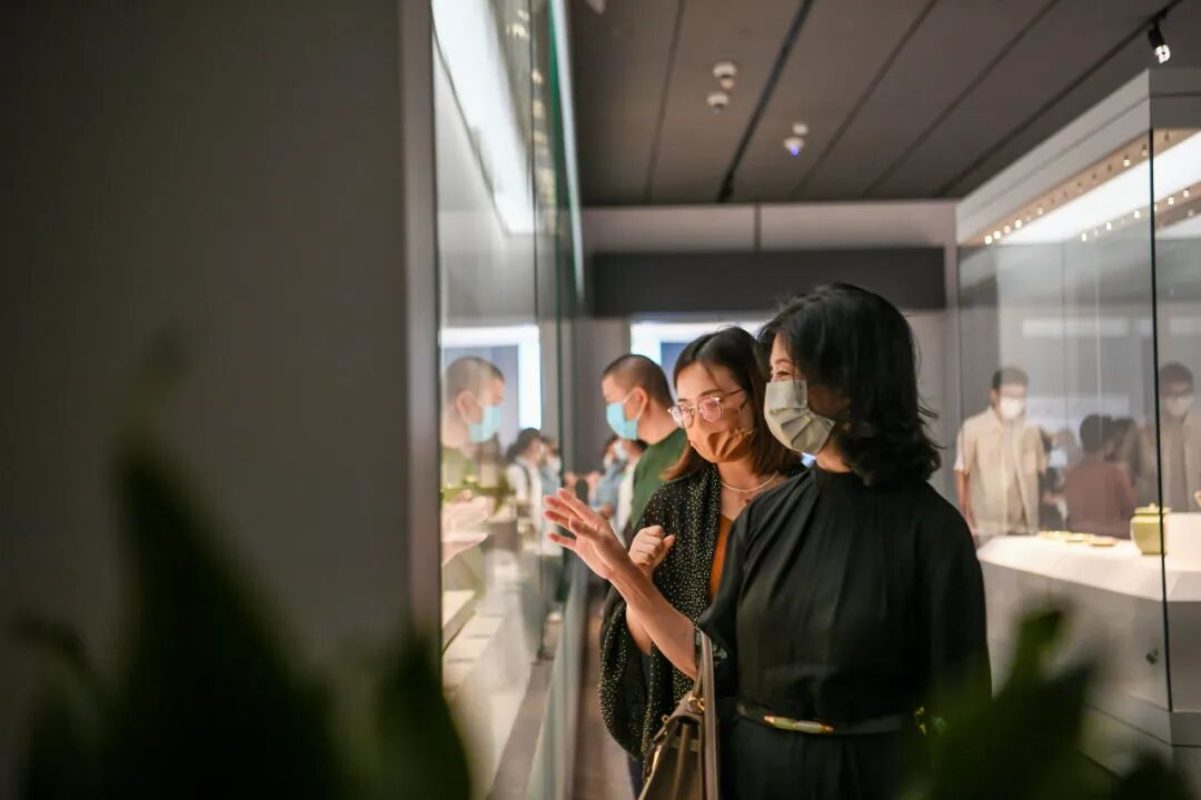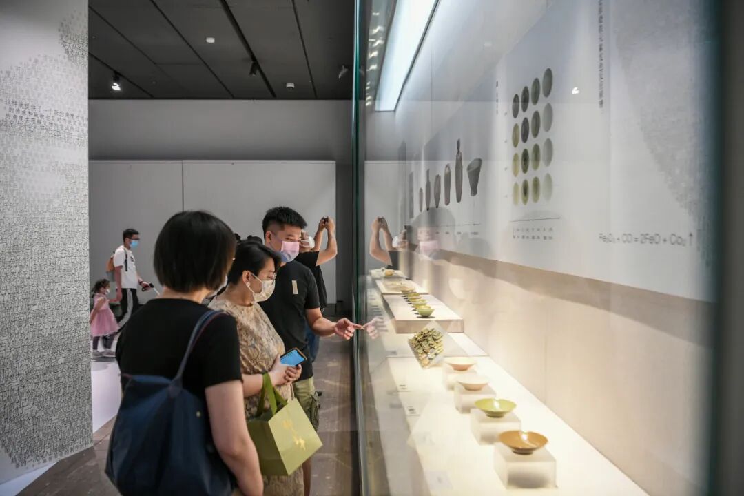 区博物馆馆长鲍伟华介绍,临安博物馆馆藏的越窑秘色瓷,数量众多、保存完好、质量精美、断代准确,是研究唐五代时期越窑青瓷的标准器物。此次展览一方面向公众展示越窑青瓷传统的材料特质与制作工艺,另一方面,通过对比展示,赋予越窑青瓷时代审美。