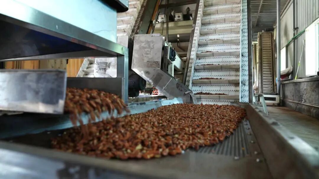 一台自动化剥壳机可以抵上100个工人的工作量,每小时能剥出几百斤山核桃,效率大大提高,自动化机器取代了人工手剥,这样加快了山核桃的上市时间。