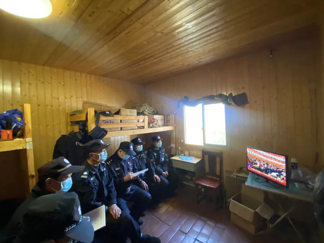 在龙岗镇玉山村,位于海拔1250米的“云上警务室”——上溪矿山警务室,值守在这里的昌北派出所民辅警陆续巡山归来。他们聚集在警务室的休息室,守在电视机前准时收看党的二十大开幕会,认真聆听习近平总书记作报告。大家边听边记,不时响起热烈的掌声。“作为一名守山民警,我要谨记习近平总书记的教导,始终把人民群众的安全放在首位,牢记使命保平安。”上溪矿山警务室民警周扬说道。