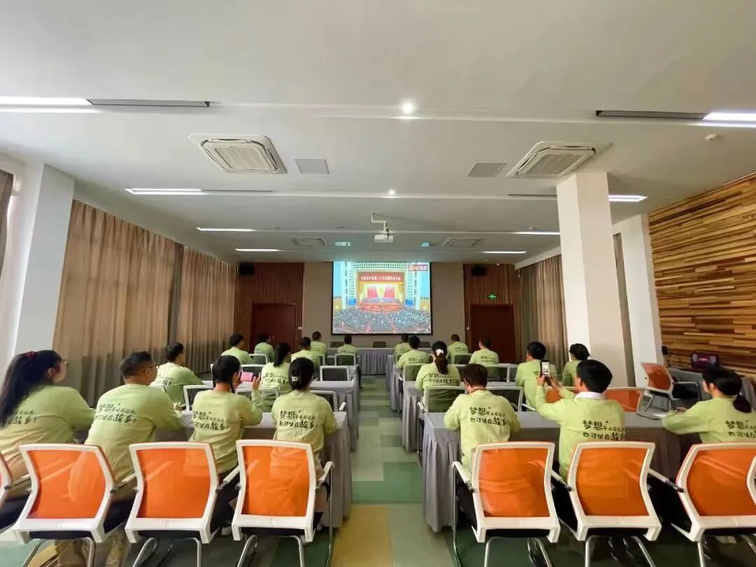 在临安农创园的会议厅,近30位临安新农人(农创客)早早守候在大屏幕前,准时收看党的二十大开幕会。