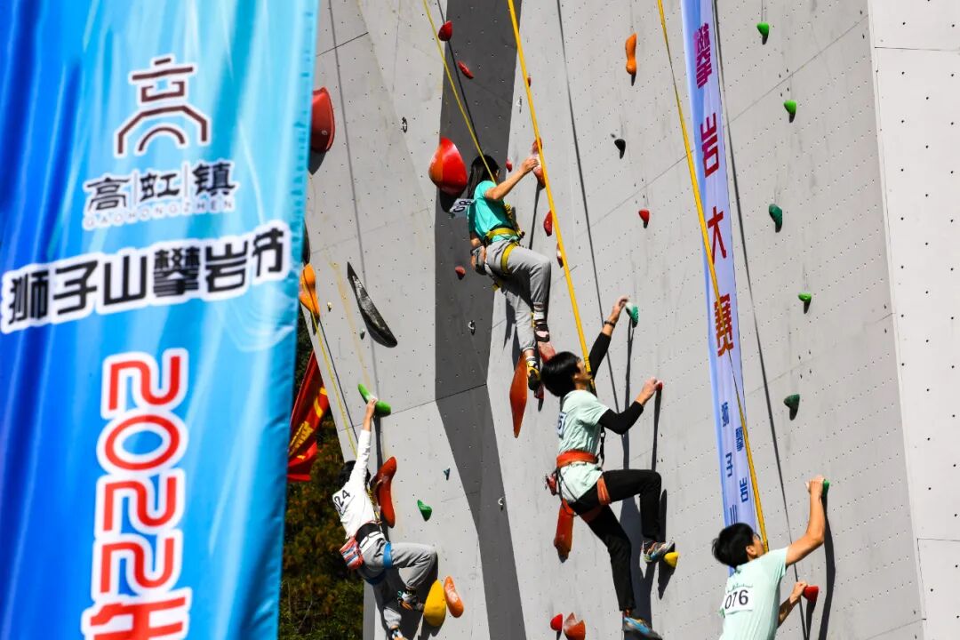 攀岩运动有“峭壁上的艺术体操”之美称。5日,2022年长三角攀岩大赛在高虹镇龙上村开赛,来自长三角地区120余名攀岩选手参与角逐。