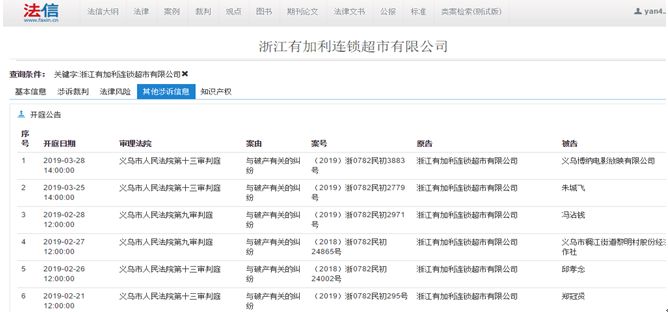 杨法官想查询浙江有加利连锁超市有限公司的基本情况,故使用法信·类案检索中涉诉企业(机构)信息检索查询功能进行了相关检索。