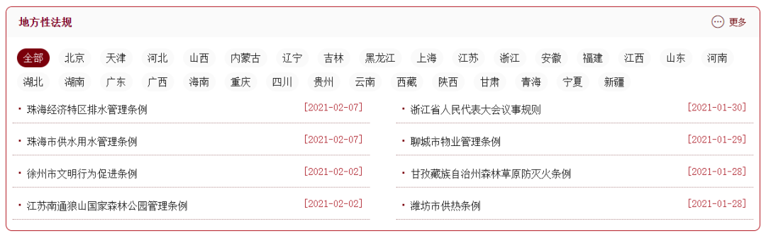 依托立法备案制度,各地人大制定的地方性法规在国家法律法规库中都进行了集中收录。