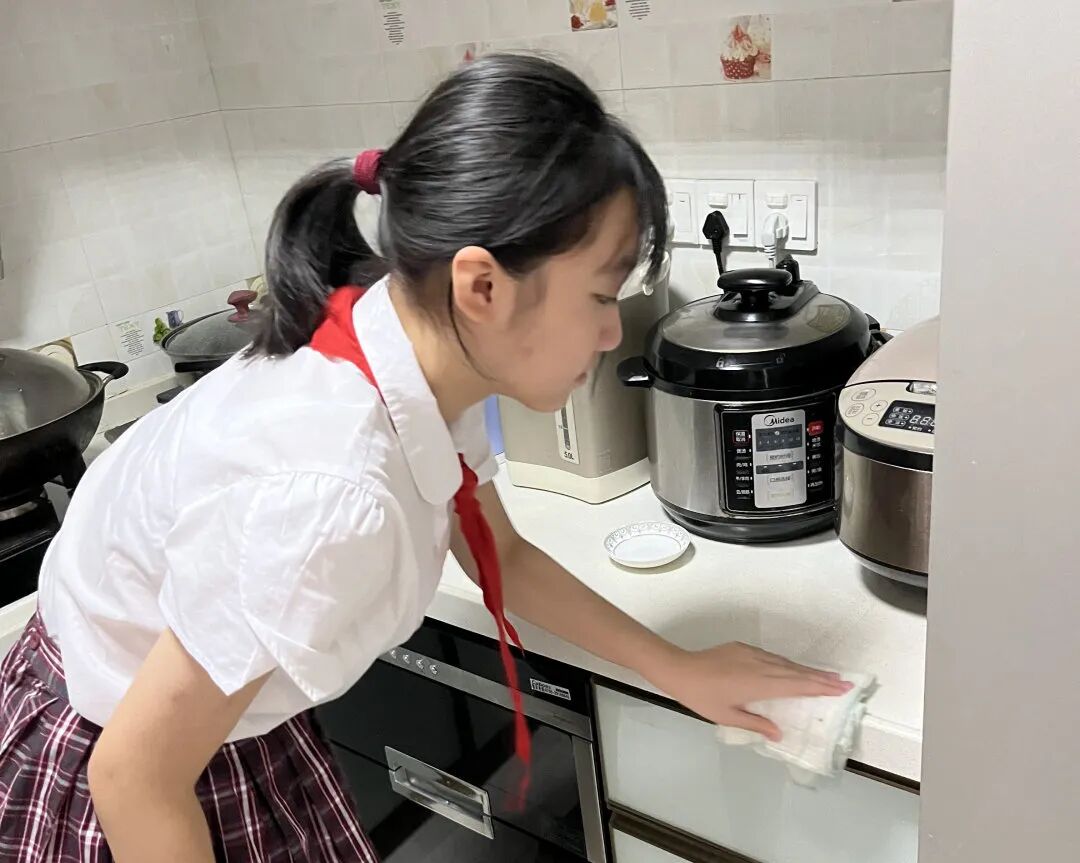 水库小学劳动科组为每个年级准备了专题劳动体验课,如“吹响起床小号角”“清洗我的小水杯”“营养早餐有新意”“水果乐园”“我家厨房大变身”“我做月饼迎中秋”,旨在培养低段学生的良好生活习惯,提高高段学生日常劳动技能。