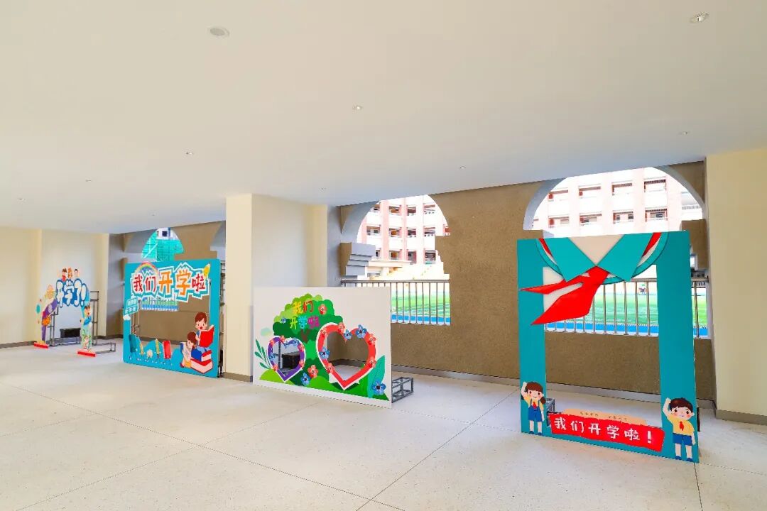 校园内设置了四个欢乐可爱的拍照打卡地,老师们将把每一个孩子的欢乐瞬间记录下来,留存下孩子快乐开学的美好记忆。