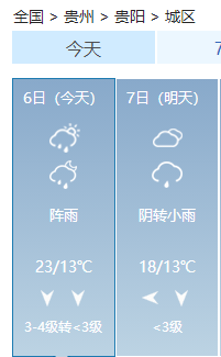 安顺 今天夜间阴天有雷阵雨 明天白天阴天有零星小雨 12到18℃