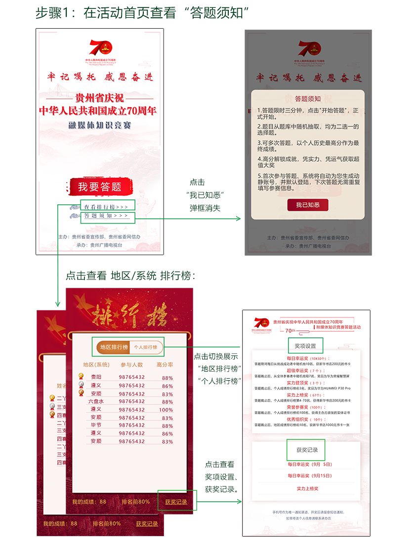“牢记嘱托、感恩奋进”——贵州省庆祝中华人民共和国成立70周年融媒体知识竞赛9月4日正式启动。
