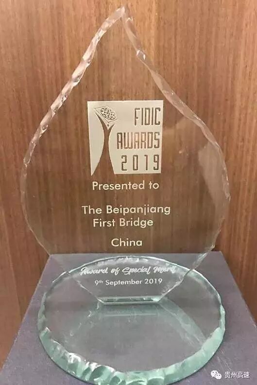 由贵州高速集团组织建成的毕节至都格高速公路北盘江大桥(北盘江第一桥)获得又一项国际殊荣—2019年度菲迪克特别优秀奖(Award of Special Merit),这也是北盘江第一桥继 “古斯塔夫·林德撒尔”金奖后获得的又一国际性大奖。