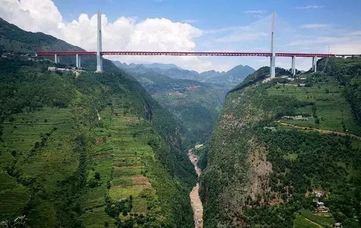 北盘江第一大桥采用720米主跨一跨跨越高差达700多米的深V型大峡谷,成为国际上首座主跨跨径超500米的跨越大峡谷斜拉桥。该项目的建成为当地群众的出行带来了极大的便利,使宣威至六盘水的出行时间从5个小时缩短为不到2个小时,让祖祖辈辈在大山里居住的老百姓走出了大山,拥抱城市。