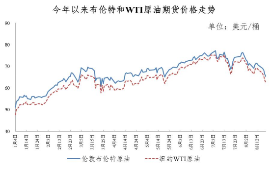 据国家发改委价格监测中心监测,本轮成品油调价周期内(8月9日—8月20日)国际油价大幅下跌。平均来看,伦敦布伦特、纽约WTI油价比上轮调价周期下降5.98%。