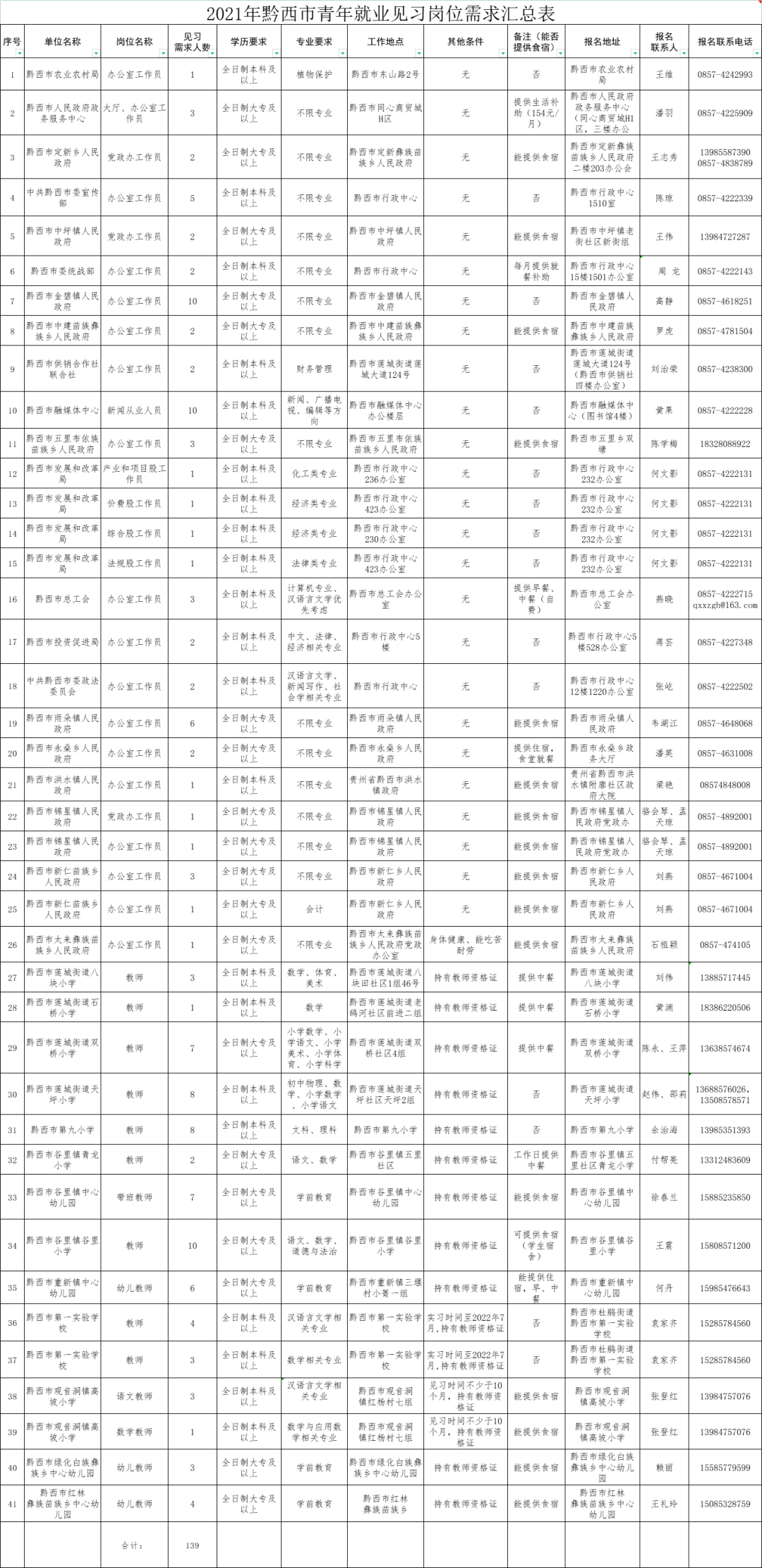 黔西市2021年青年就业见习