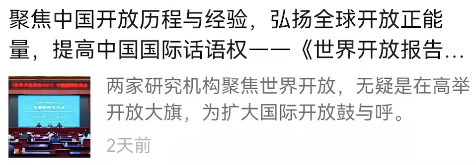 《报告》第一部分包括第1-6章,重在从理论和实践角度描述世界经济的开放发展,探讨经济全球化与世界开放大势,研究世贸组织与全球经济治理,梳理国际贸易投资的实践和成效等。第二部分包括第7-12章,回顾中国特色开放发展之路,总结中国开放历史进程、伟大成就和主要经验,梳理自贸区港、进博会、“一带一路”等重要开放实践的进展,提炼中国参与多边和区域经贸合作的实践成果,论述如何以高水平对外开放推动构建新发展格局,彰显了中国持续扩大开放,为世界共同开放做出积极贡献。